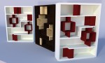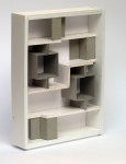 Construcción en cartón pluma a escala de la estantería Zippy durante la fase de diseño. Una premaqueta nos da una buena idea del volumen final de nuestro diseño, nos permite modificar el diseño facilmente e incluso realizar aproximaciones a las texturas finales.